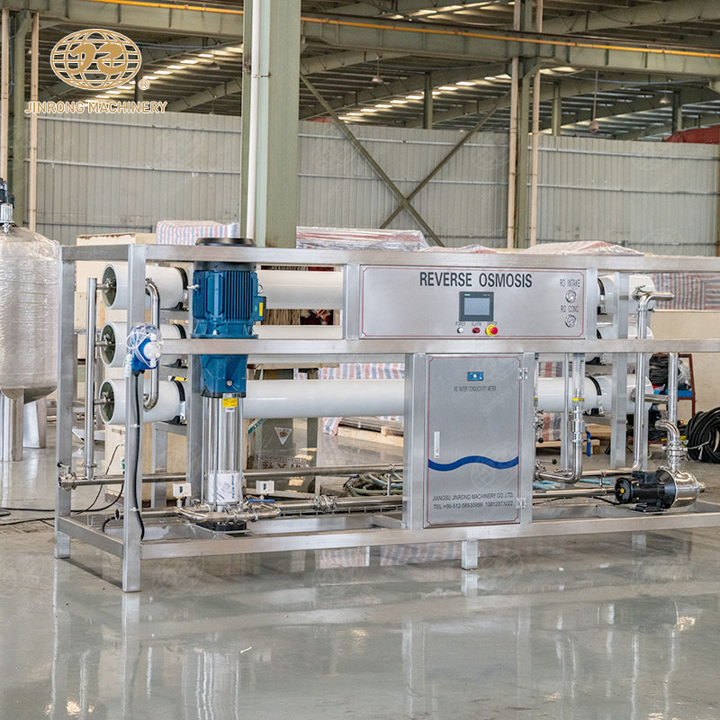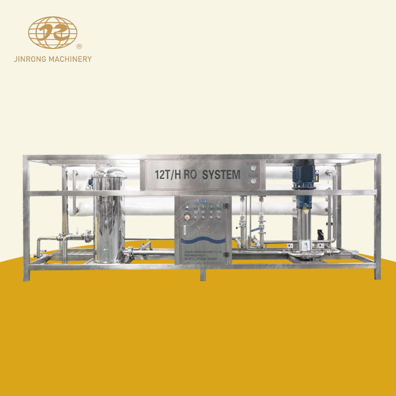 RO反滲透系統,也稱為反滲透水處理系統,是一種基于膜分離技術的水處理系統。RO反滲透系統利用反滲透膜的選擇性,以膜兩側靜壓差為動力,克服溶劑(通常是水)的滲透壓,允許溶劑通過而截留離子物質,對液體混合物進行分離。具體來說,原水在高壓力的作用下通過反滲透膜,水中的溶劑由高濃度向低濃度擴散,從而達到分離、提純、濃縮的目的。由于這個過程與自然界的滲透方向相反,因此被稱為反滲透。12T/H RO反滲透系統是礦泉水灌裝線中重要的一部分。